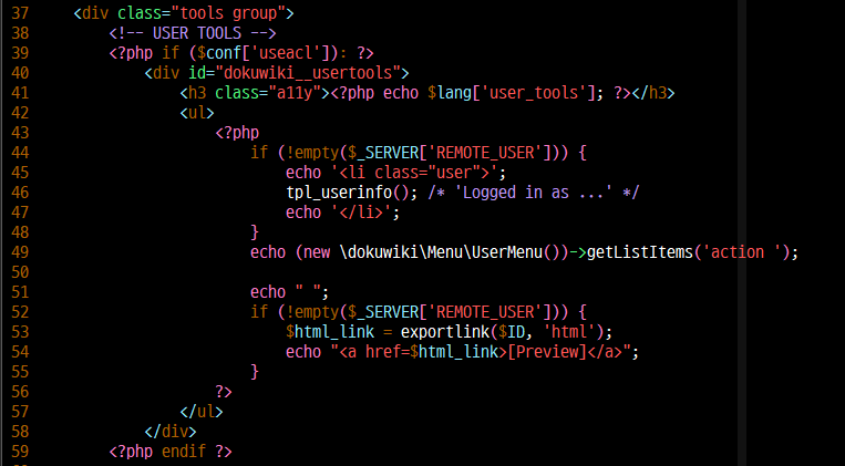 - header tools group 부분에 [preview] 링크 만들기 위해 해당 부분에 php 코드 추가